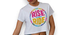 This isn't your average tee. It's a statement piece for the cyclist who thrives on the open road, fueled by adventure. The Rise and Ride crop is more than just comfortable fabric; it's a call to action, a daily reminder to chase the sunrise and conquer the miles ahead.