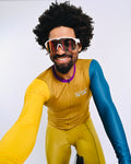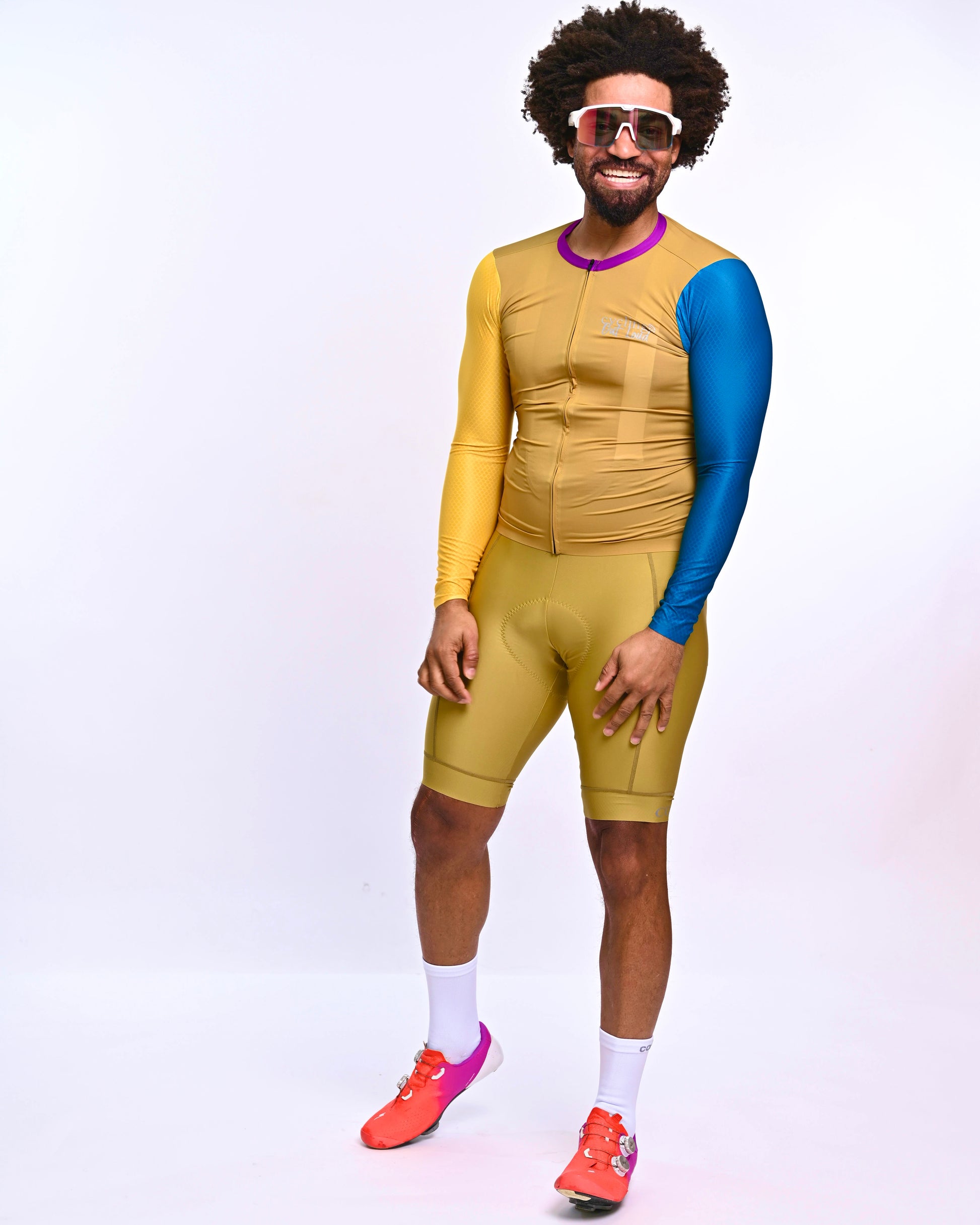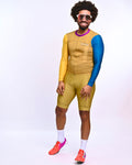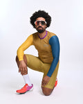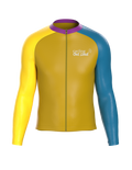 Engineered for the modern cyclist, this Men's Colorblock Long Sleeve Jersey delivers exceptional performance and a standout design. The lightweight, moisture-wicking fabric ensures optimal temperature regulation, while the ergonomic cut allows for a streamlined fit. The bold base color provides a strong foundation, while the yellow and turquoise honeycomb patterned sleeves add a unique, dynamic visual element. This jersey isn't just apparel; it's a fusion of technical excellence and bold, contemporary style.