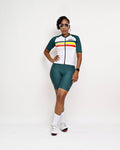 Effortless style, redefined. The Trifecta Performance Jersey is for the rider who understands that the ultimate statement isn't about volume—it's about impact. The clean lines and timeless green, yellow, and red stripes deliver a classic aesthetic that is timeless.